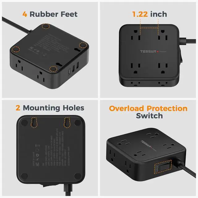 900J Surge Protector Outlet: Equipped with overload protection, short circuit protection and overcurrent protection; Power strips with surge protection 900J safely protects your electronics from power surges caused by storms or electrical faults