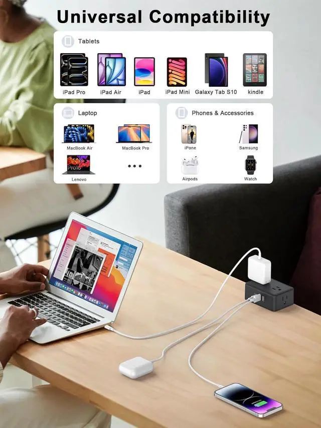 Made of PC fireproof material, short-circuit, grounded, overload, and ETL certification, over - voltage protection safety system. Please check whether each port is working properly before use. Say goodbye to annoying bending over to the floor looking for a spare close enough outlet.