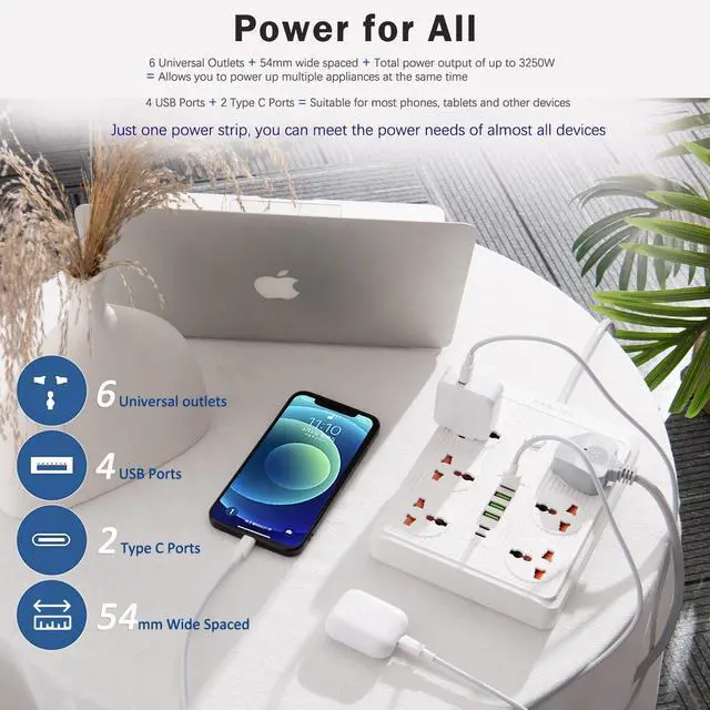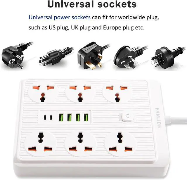 Universal Power Strip: Universal power sockets can fit for worldwide plug, such as US plug, UK plug and Europe plug etc.