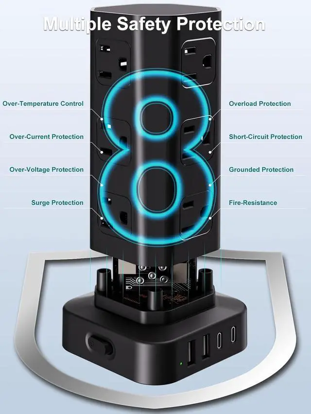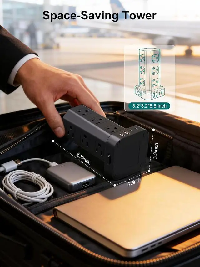 Space-Saving Office Supplies: This vertical power tower features a compact footprint ( 3.2 × 3.2 × 5.8 in) that occupies minimal desk space. Pick this mini power strip tower to keep your desktop neat and organized, perfect for home, office, dorm, or travel use. Four non-slip rubber feet on the base prevent the power tower sliding