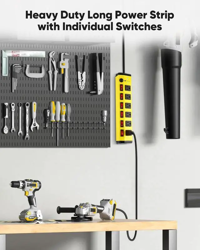 Suitable for Multiple Home & Professional Scenarios This heavy duty power strip features a rugged metal housing, highly resistant to wear, fire, and impact. Ideal for use in workshops, garages, homes, offices, and similar environments. Its secure design and protective features ensure stable power delivery for all your essential devices and tools.