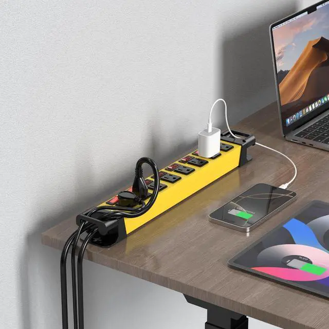 8 individual switches on this heavy duty power strip so that you can turn on and off devices independently, no more hassle of plugging and unplugging devices. Save effort and money. It suits nicely for a power tool battery charging station on your workbench.