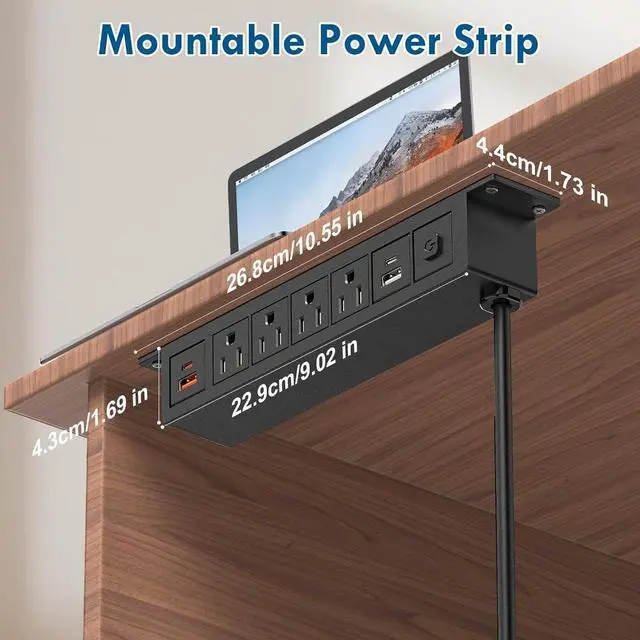 Mountable Power Strip: This desk power strip is equipped with 4 screws, and it can be easily mounted under the desk or attached to furniture. You can also install it on table lips, side table legs, or under the desk.