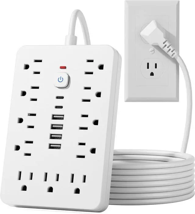 17 in 1 Compact powerstripWith dimensions of just 6.5 " x 4.3 " x 1" ( 16.5 cm x 11cm x 2.5 cm), JouleLoom 15 FT extension cord power strip redefines portability without compromising on functionality. 11 AC outlet is strategically spaced 1.2 inches (3cm) apart, allowing for a remarkable 17 plugs to be accommodated effortlessly. Experience unparalleled convenience and versatility in a sleek, space-saving design, perfect for home, office, or travel use.