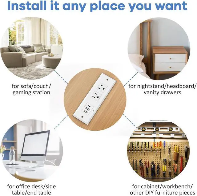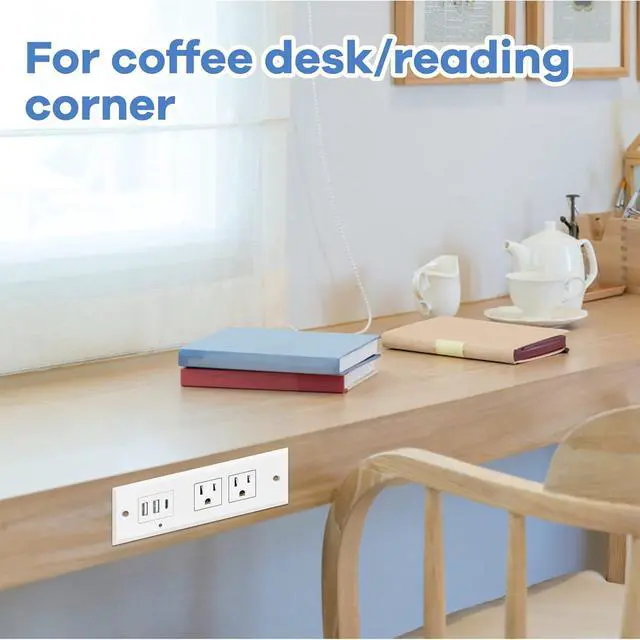 2 USB-A Port (5V/2A) AND 1 USB-C Port ( 18W/5V/3A), desk outlet with usb ports is easy to charging phone, controllers, tablet or other device requiring USB power.
