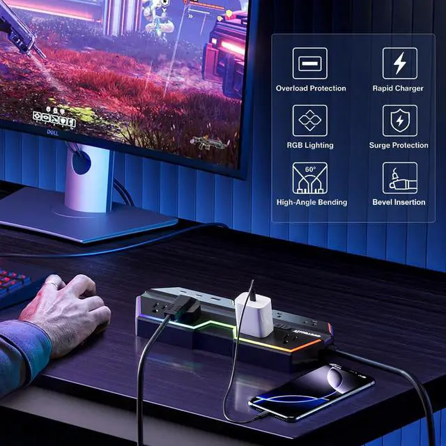 High-Speed USB Power Delivery: Equipped with 20W USB Power Delivery, this surge protector ensures fast and efficient charging for your gaming PC, smartphones, tablets, and other electronics, minimizing downtime.