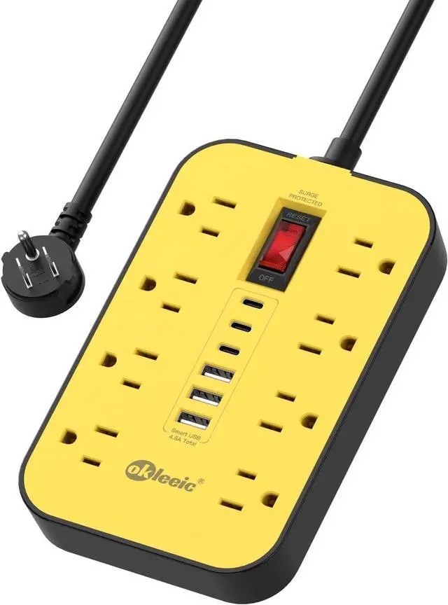 14 IN 1 Heavy Duty Power Strip- 6 USB(3 USB-C) charging ports Integrated with intelligent charging technology that enables each port to detect and deliver ideal output up to 2.4A / 3.4A, the total USB output is up to 4.8A (24W). You can charge your cellphone, tablets, and other USB gadgets at the same time.