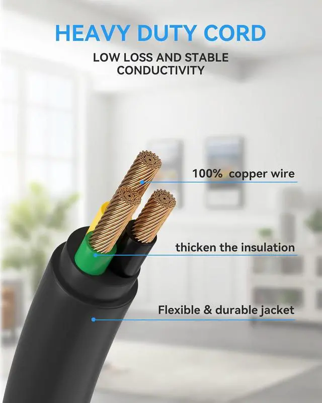 Reliable Safety1875W extension cord is made of high strength fire-resistance ABS+PC shell, making it fireproof up to 1382 F. 5ft extension cord is made with thicker 14 AWG wire diameters which can handle more amperage, and therefore 1875 wattage. High-end solid capacitors ensure complete protection against electrical short circuit, over heat, over charging, over current and over voltage danger.