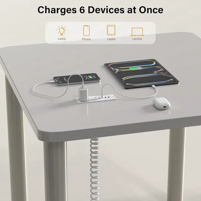 Meet your power needs at the side table of the sofa, 2 USB-C ports, 2 USB-A ports;