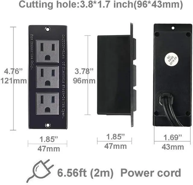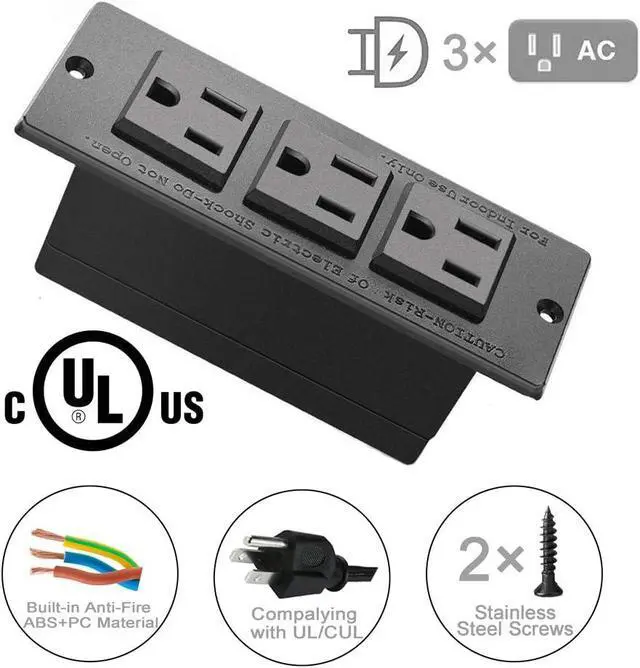 Build in Power Strip Suitable for sofa table behind with ledge, drawer, cabinet, desk, kitchen island, nightstand, countertop, workbench, shelf