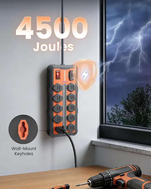 4500J Surge Protection: Built-in surge protection with a 4500-joule rating helps absorb sudden voltage spikes and power surges, reducing the risk of damage to connected devices during unstable power conditions