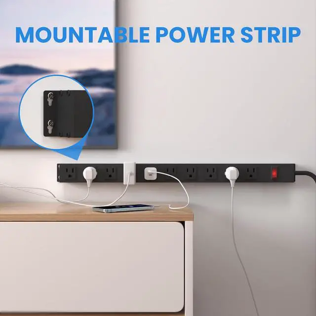 WALL MOUNTED DESIGN: Durable metal power strip has mounting holes on the top and bottom, which can be installed under the table, table leg, wall and other places arbitrarily. It is convenient and can be used for a long time.