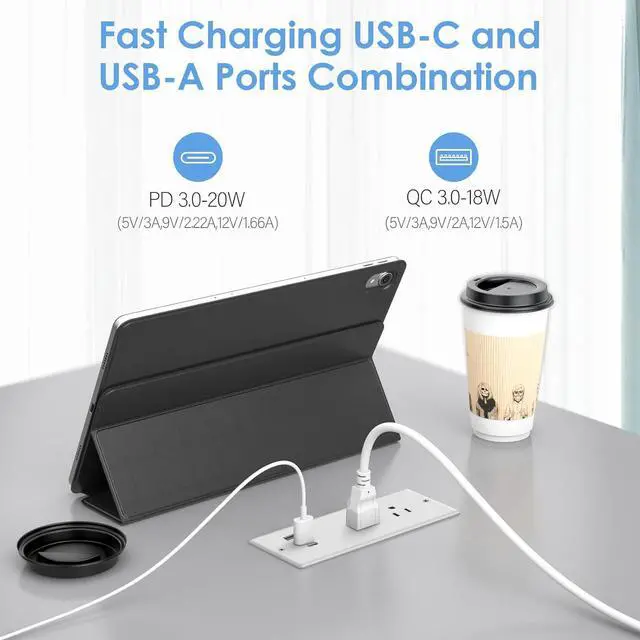 Can be installed on end table, side table, sofa table, conference table and other furniture to meet your charging needs anytime, anywhere!