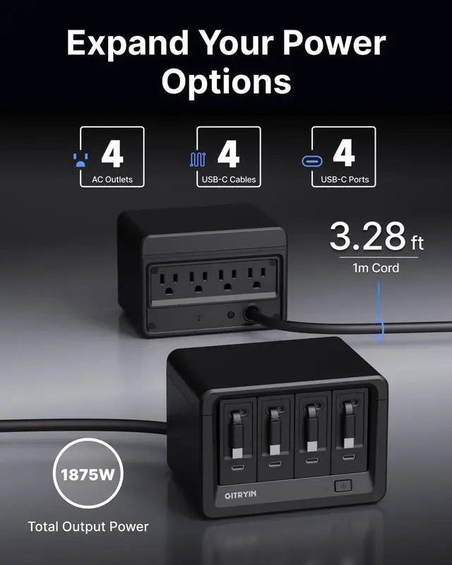 All-in-One Charging Solution: Revolutionize your workspace with 4 retractable 40W type-c wall chargers in one sleek hub. Power laptops, phones, tablets, smartwatches, and more simultaneouslyeliminate outlet shortages and tangled cables while maximizing charging efficiency.