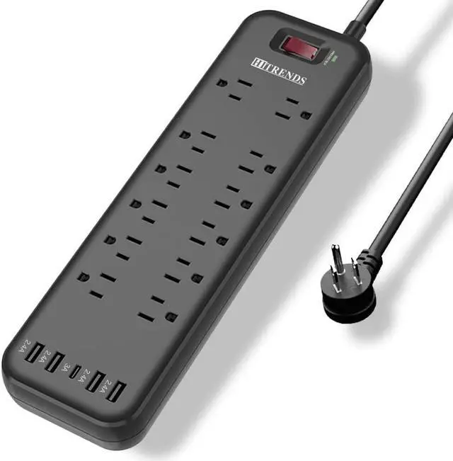 Fireproof Materials & Heavy Duty Extension Cord With 14 AWG GAUGE three prong heavy duty extension cord is rated for 15 amps, the flat plug power strip will support the common power requirements in the home and office. While the fire-resistant materials provide your devices with the safest protection. HITRENDS power strip surge protector will give you all around protection.