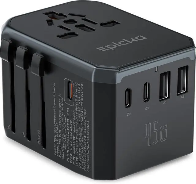 6 IN 1 WITH 45W FAST CHARGING - This adapter goes beyond just an AC outlet, allowing you to charge up to 5 USB devices simultaneously at high speed. It features 3 USB-C ports and 2 USB-A ports, with the USB-C ports supporting up to 45W of fast charging power. Ideal for smart phones and other Android phones, smart watch, fitness tracker, tablet, power bank, camera, handheld game console, headsets, and everything else that is charged through a USB port.