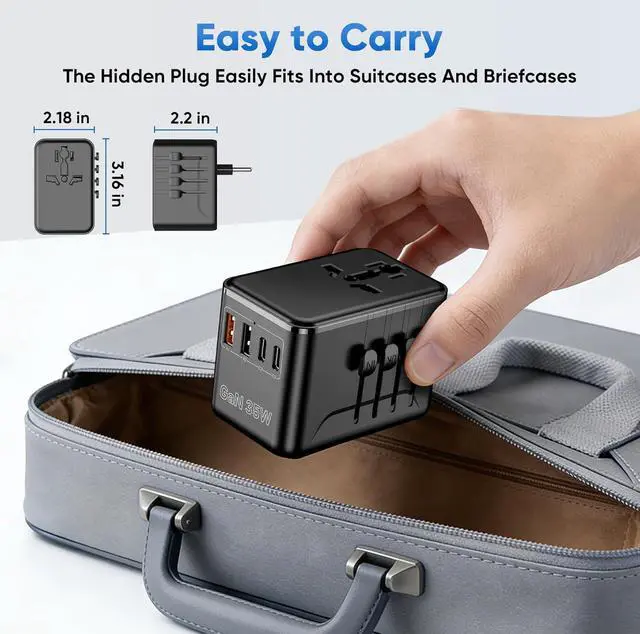 COMPACT & FAST CHARGING - This compact travel adapter ( 3.16 x 2.2 x 2.18 in) easily fits into suitcases and briefcases. It also utilises (GaN) technology for faster charging and lower heat generation. It' s a travel essential and a great gift for international travelers.