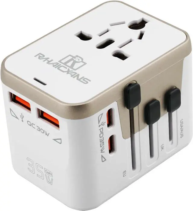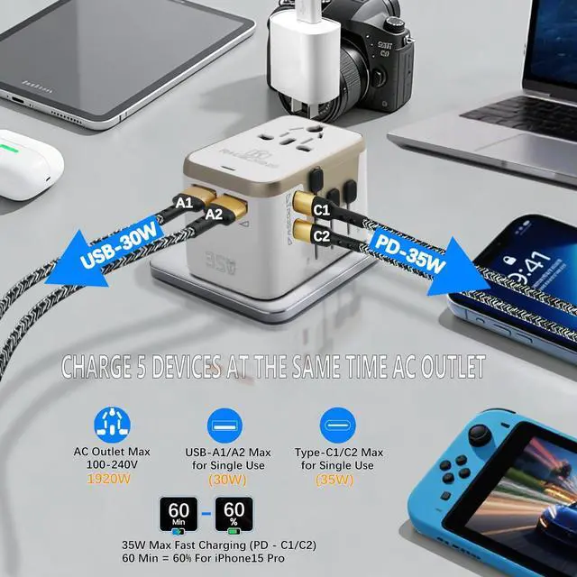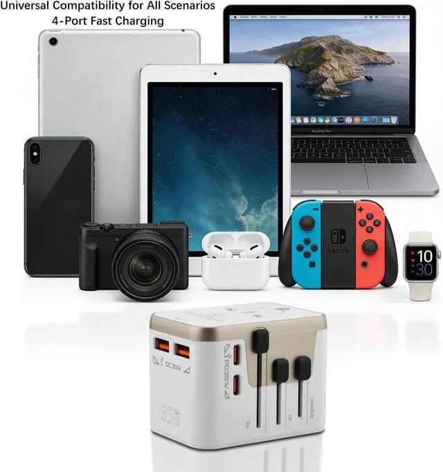 Fast & Efficient Charging: Equipped with 2 USB-A ports (up to 2.4A each) and 2 USB-C ports (up to 3.4A, 35W max), this adapter allows you to quickly charge multiple devices simultaneously, such as smartphones, tablets, laptops, cameras, and more. Ideal for power-hungry gadgets on the go.