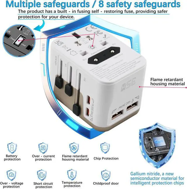 Portable & Safe Design: Compact, lightweight, and easy to pack in luggage or briefcases. Includes double fuse protection (240V, 8A standard), integrated security shutters, and no cords for added safety. Cruise ship approved, ensuring reliable and secure use during your travels.