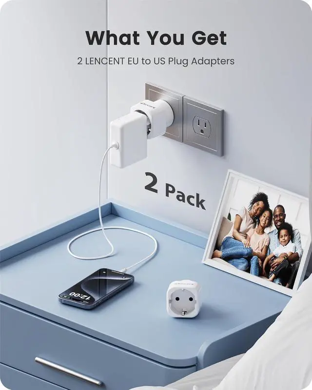 What you get -2 Pack European plug to US adapter, 1*User Manual