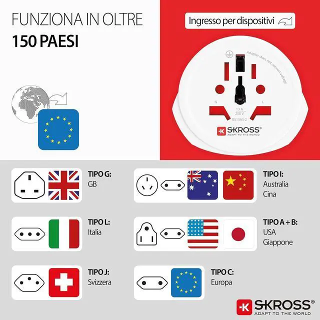 The Country Adapter World to Europe provides travelers from all over the world with a reliable and easy connection