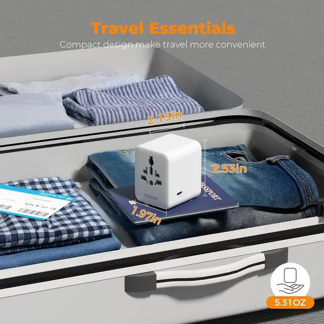 Space Saving: This compact UK adapters for travel ( 2.53 x 2.15 x 1.97 in, 5.31 oz) saves travel space; TESSAN universal travel adapter has no surge protection or cords, designed for cruise ship essentials and meets the requirements