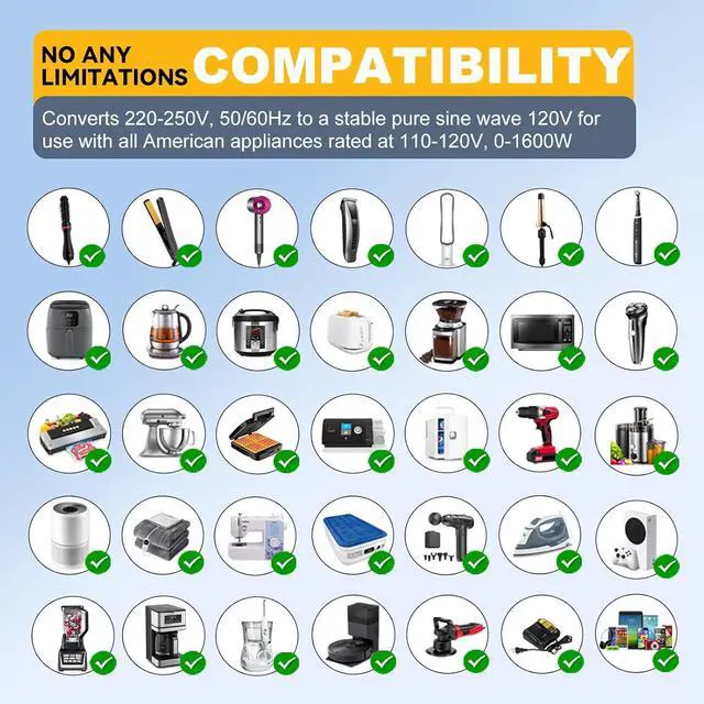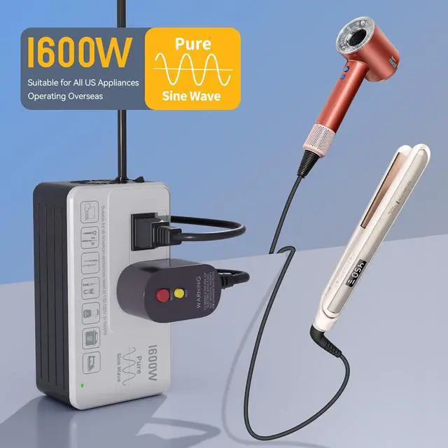 Voltage Converter: This 220v to 110v converter converts 220-250V down to a stale 120V pure sine wave, POWER ANY U. S. APPLIANCES (110-120V, 0-1600W) ABROAD in 220-250V COUNTRIES, such as CPAP machines, hair straighteners, curling irons, hair dryers, coffee makers, blenders, electric toothbrushes, and any home and kitchen appliances.