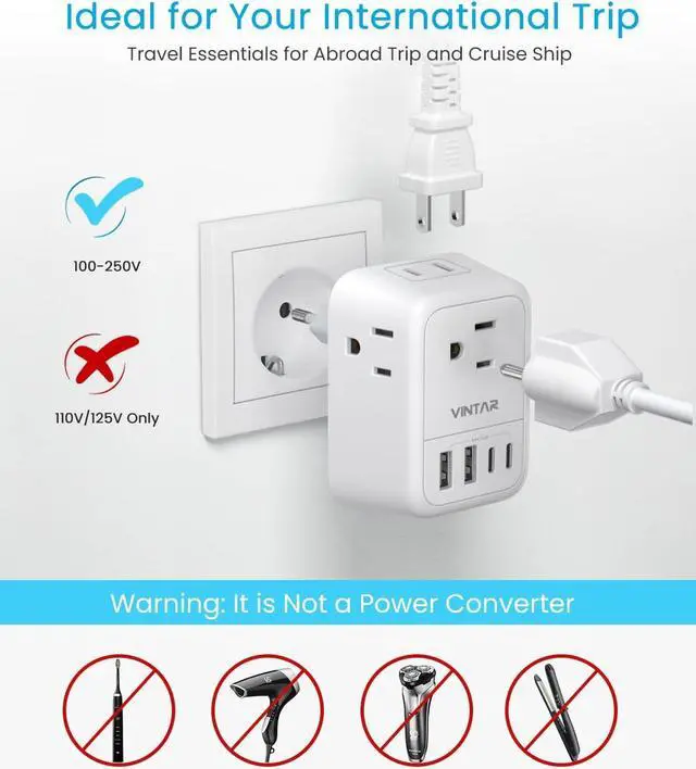 Important Note: This is NOT A CONVERTER. This European power adapter is only compatible for 100V to 250V wide voltage device, If you want to use your hair dryer, straightener, electric toothbrush or razor, they must support 100V to 250V dual voltage, otherwise you may need a power voltage converter