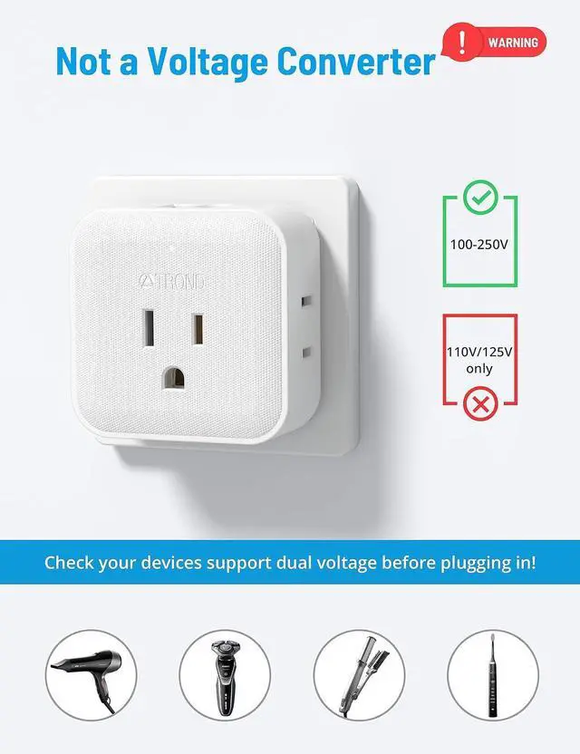 CANNOT CONVERTER VOLTAGE. Just be aware that this outlet converter us to europe is NOT a Voltage Converter or Transformer. So whatever you plug needs to be dual voltage, especially hair dryer, straightener, electric toothbrush or razor. Your electric items could potentially melt/catch fire/be destroyed if theyre not dual voltage.