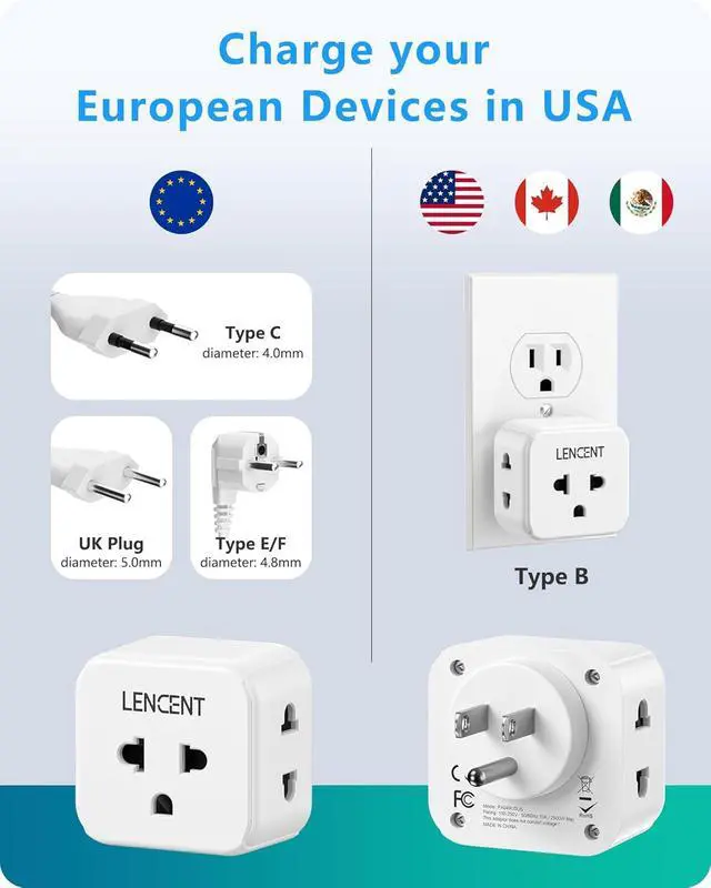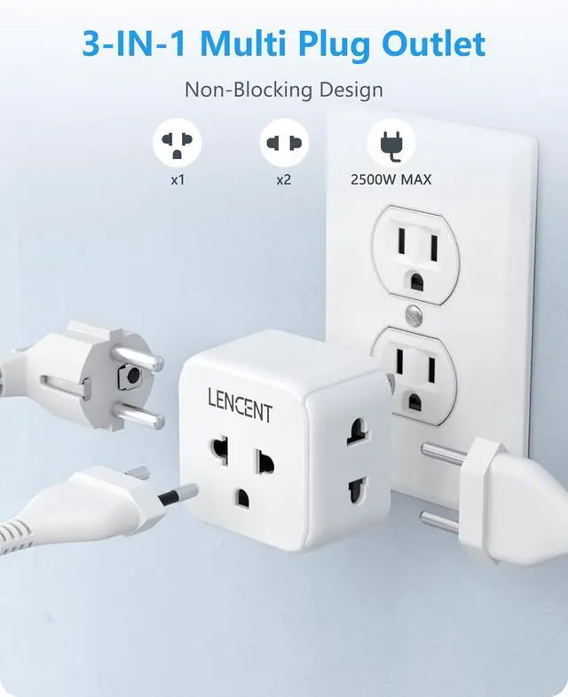 Safety Guaranteed & Practical: LENCENT 3-in-1 multi plug adapter is made of 1382 fireproof material, which greatly improves the durability and safety. Suitable for any indoor place, especially bedrooms, bathrooms and kitchens, it is a must-have choice for families
