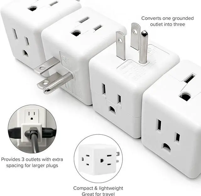 Multi-Prong Compatibility - This grounded adapter fits 2 and 3-pronged plugs, multi-sided for extra space and larger plug-in items.
