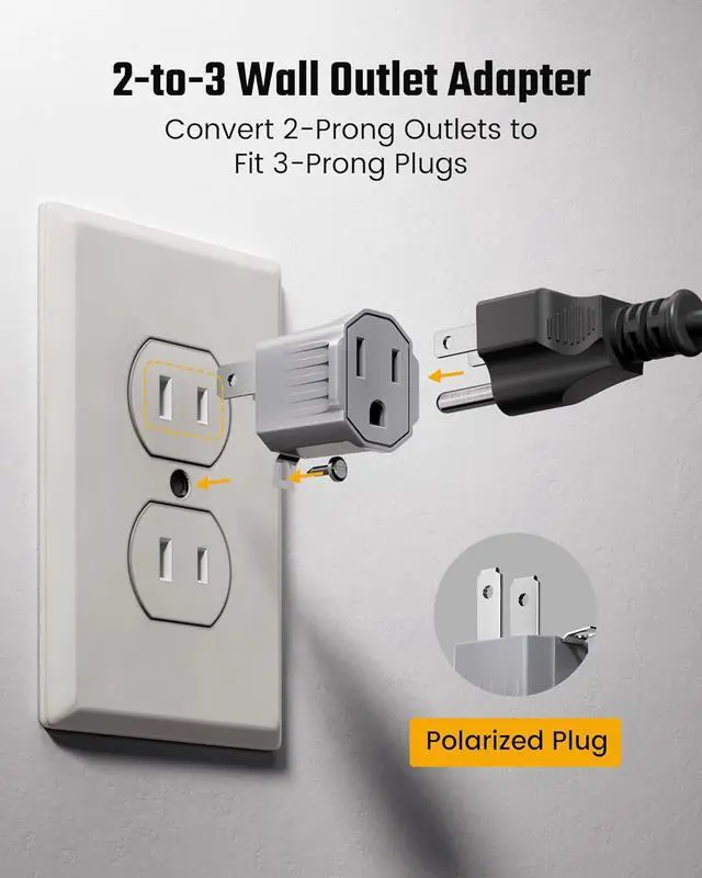 Polarized for Safer Connections: Each two prong to three prong adapter features a polarized plugwide and narrow blades ensure proper alignment of hot and neutral wires. This minimizes risk and ensures secure connections, making it more reliable than a non-polarized outlet adapter. Flip the adapter if you find it unable to plug in, as some outlets were installed upside down.
