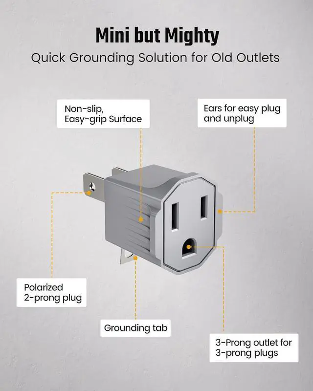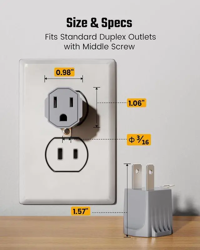 Built-In Grounding Tab for SafetyEquipped with a metal grounding tab, this outlet adapter fits securely under the duplex wall outlet middle screw, adding an extra layer of protection by grounding the 3 prong adapter properly.