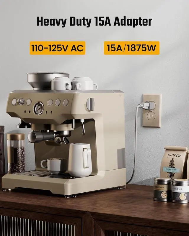 Reliable and Certified QualityThis 3 prong to 2 prong adapter is an ETL-listed grounding plug adapter made with fire-retardant PBT material. Rated at 125V/15A with a max load of 1875W, it resists temperatures up to 392°F (200°C). Perfect three prong adapter plug for safely connecting power strips, kitchen appliances, and industrial tools. A heavy-duty 2-prong outlet adapter solution for wall outlets 3-prong needs.