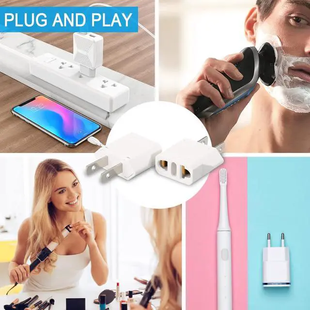 SAFE & RELIABLE: These Europe to us plug adapters are made with copper pin and conductor plus a PC fireproof shell, the charger ensures safe electricity and avoids potential risk caused by non-compliant plugs.