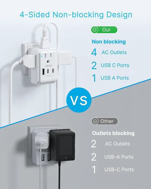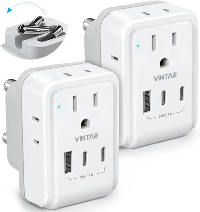 Fast Charging Dual USB C Ports: The upgraded South Africa plug adapter equipped with 4 AC Outlets, 2 USB C and 1 USB A ports to meet more charging needs. The 5V 3.4A USB C ports can charge up to 17W max, which is 50% faster than the other adapters. Ideal for charging iPhones, laptops, tablets and more. ( Please note The UCB C port is not Quick Charger 3.0, doesn' t support any other devices which need 9V to 22V charging voltage)