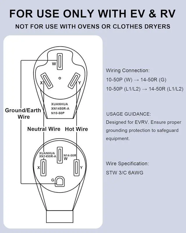 High Power EV Charging: Supports 50A 250V & 12500W Nema 10-50P to 14-50R Ev Charger Adapter, perfect for Tesla Model 3/Y/S/X and most electric vehicles (ONLY EV)