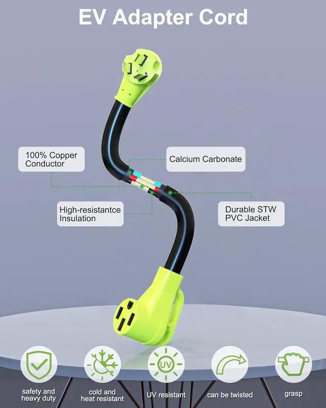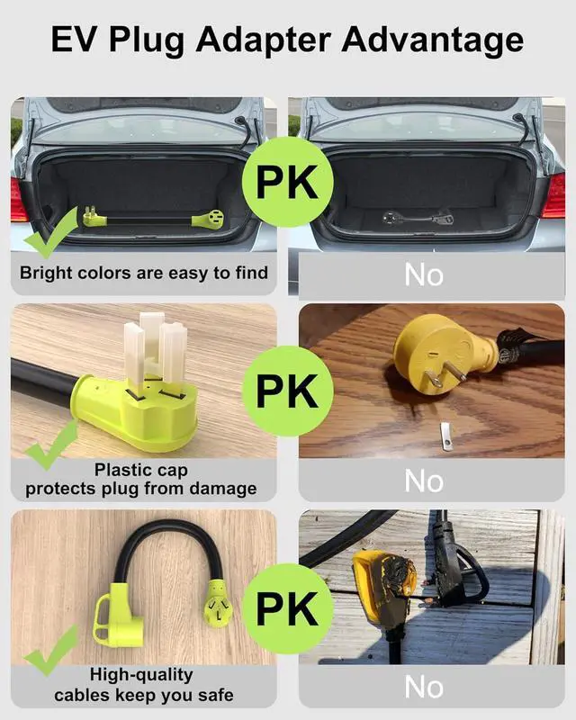 Ergonomic & Waterproof Design: Built-in grip handle for easy plugging/unplugging; waterproof PVC housing offers oxidation protection and high visibility in outdoor charging
