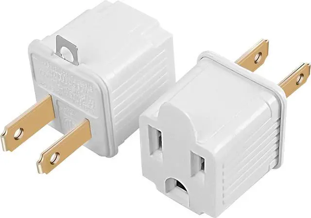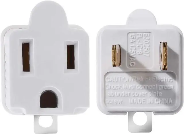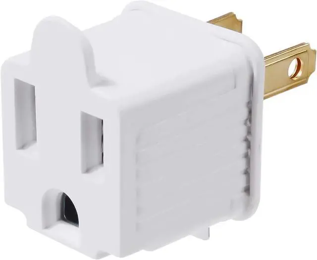 2 PRONG TO 3 PRONG ADAPTER connects a grounded electrical cord to an AC outlet without a grounding pin slot; Ideal solution for older houses or offices with AC outlets that do not accept grounded power cords