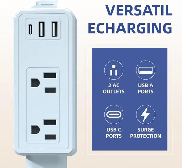 All-in-One Power Access: AC + USB Charging in One PlaceCombines standard AC outlets with USB-A and USB-C ports, allowing you to power lamps, electronics, and charge devices simultaneouslywithout bulky power strips or extra adapters