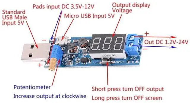 USB Buck Boost Converter 3.5V-12V to 1.2V-24V DC-DC Step Up Step Down Power Supply Module Voltage Regulator 5V to 3.3V 9V 12V 18V 24V