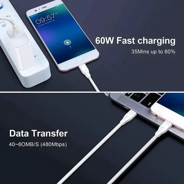 [ 6ft C Type to C Type Fast Charging Cord ] - Length of 6ft, easy for charging on different occasion, for travel, home, car, office etc. USB-C connectors on both ends offers a user-friendly reversible design. Power output up to 3Amp, date transfer speed up to 480Mbps, fast charging and transferring