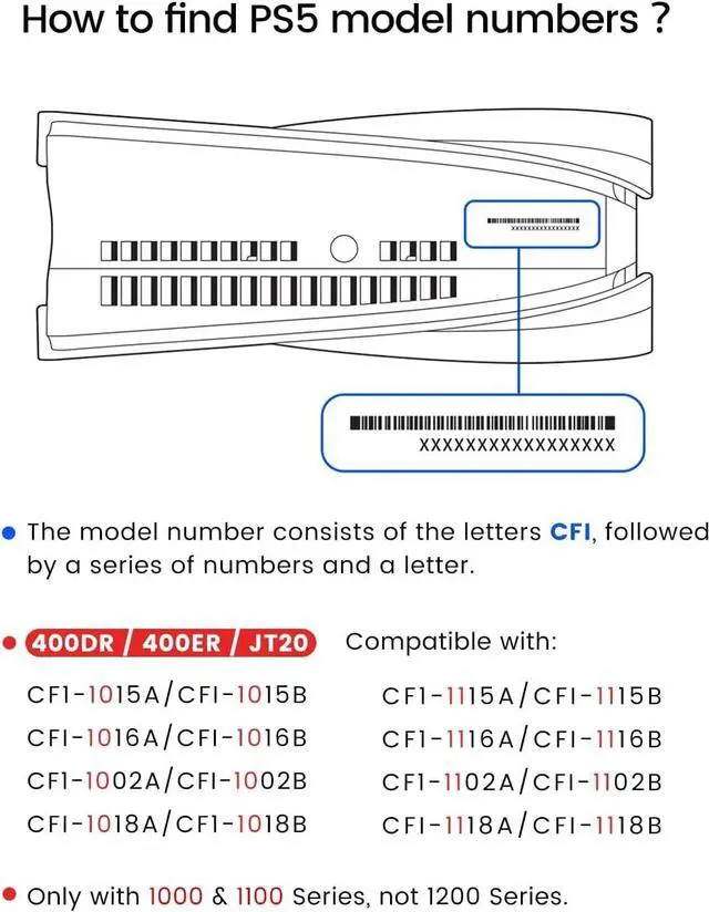 Perfectly Fitment:For PS5 Power Supple Model for CFI-1015A / BCFI-1115A / BCFI-1016A / BCFI-1116A / BCFI-1002A / BCFI-1102A / BCFI-1018A / BCFI-1118A / BCompatible only with 1000 & 1100 Series, not 1200 Series