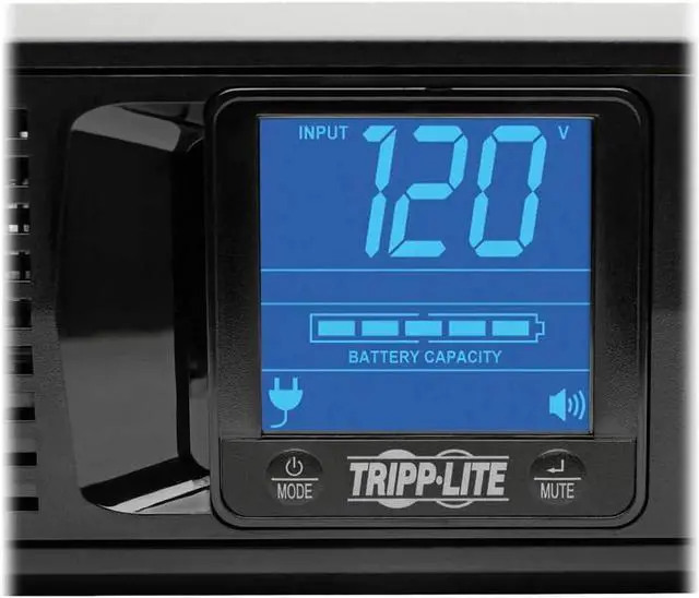 USB and RS 232 ports integrate with Eaton Tripp Lite PowerAlert software for automatic file save and graceful shutdown; LCD screen and audible alarm give real time load, battery and voltage status