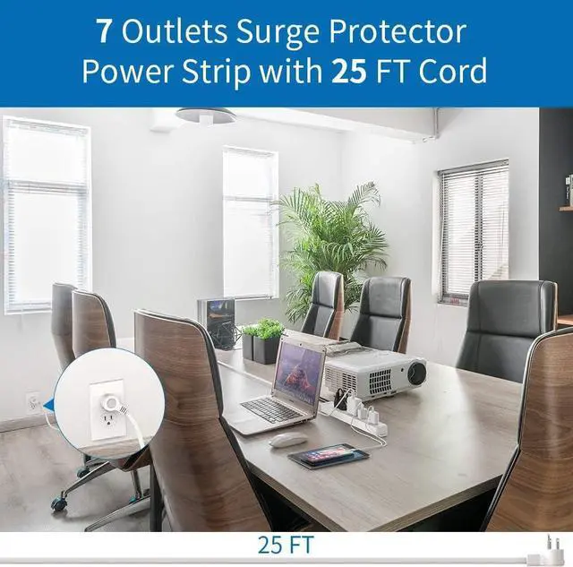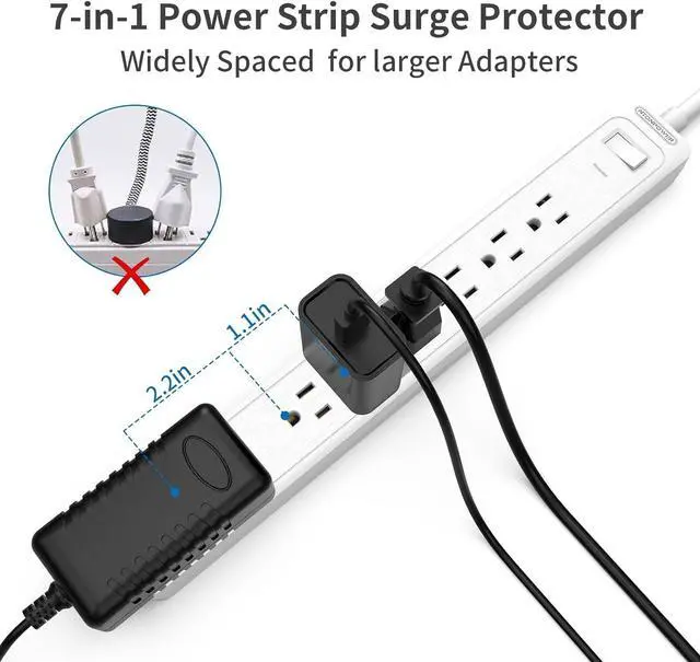Surge Protector & Overload ProtectionThe power strip has a 1080 Joule surge to protect your devices from voltage fluctuations. When the power supply is overloaded (1875W/125V~15A), the overload protector will automatically trip to protect your device, and the casing is made of PC material with a flame-retardant temperature of 1382°F, ensuring protection against electrical short circuits/overheating/charging/ Current/voltage provides full protection. It has passed FCC and RoHS certifications.