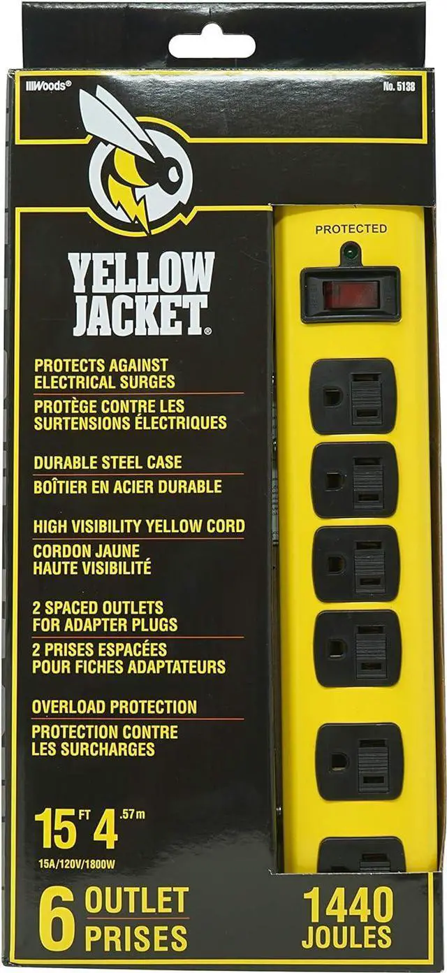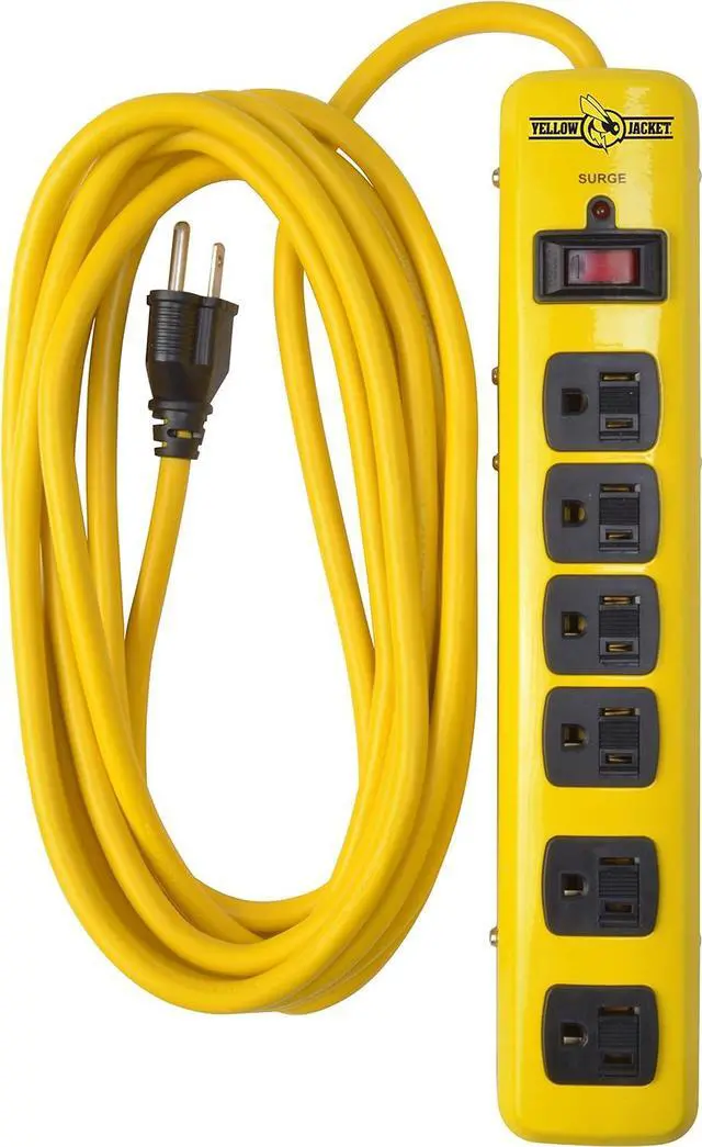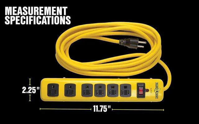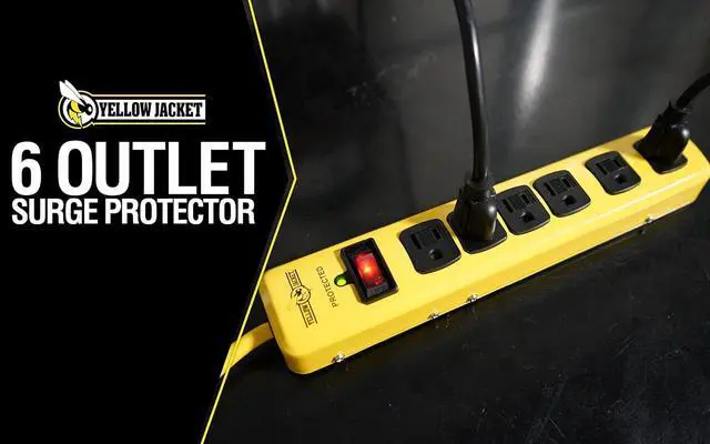 Heavy duty metal housing makes this 6 outlet surge protector perfect for use in your workshop or any other rugged work area