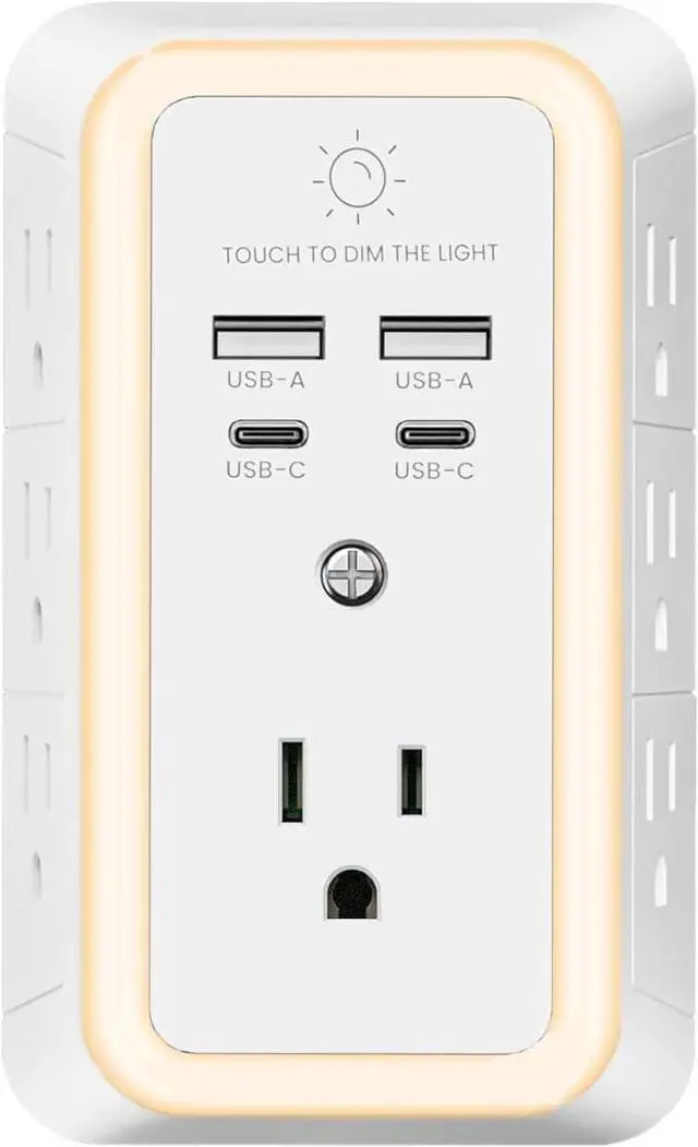 Outlet Extender with Night Light: The night light is soft, warm and comfortable and will not disturb to your sleep. Great for bedroom, bathroom, nursery, hallway, kitchen and etc. Three levels of adjustable brightness let you choose the right amount of light for your own need.