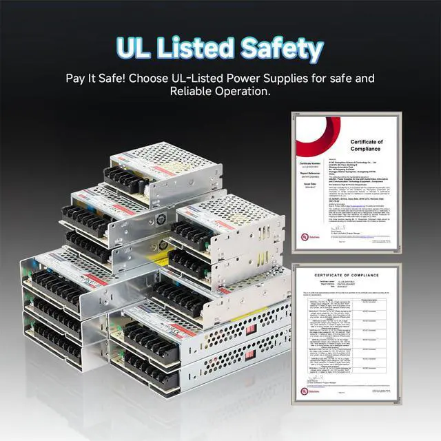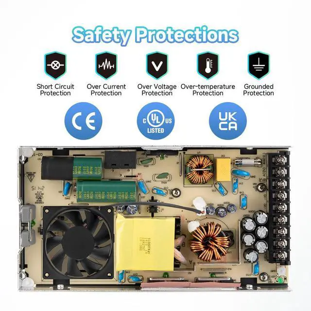 Safety & ProtectionUL, CE, RoHS, UKCA, and CCC certified. Integrated with full protection against overload, overvoltage, overtemperature, and short circuits. Automatically recovers operation once the fault is cleared for worryfree use.Operating ambient temperature range: -30°C to +70°C; LED indicator for power on;Operating up to 5000m altitude.