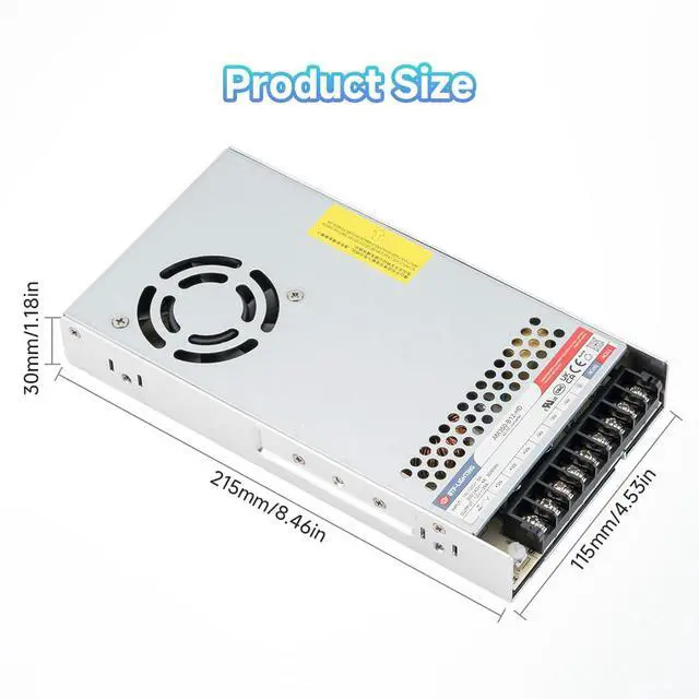 Warm TipsFor optimal safety and longevity, choose a power supply rated at least 20% higher than your devices requirement. Do not exceed 350W total load. Not designed for battery charging. Power cord not included; search for 3Prong AC Power Cord if needed. Backed by a 2year warranty.300W+ power adapters come with a built-in cooling fan; those below 300W do not.