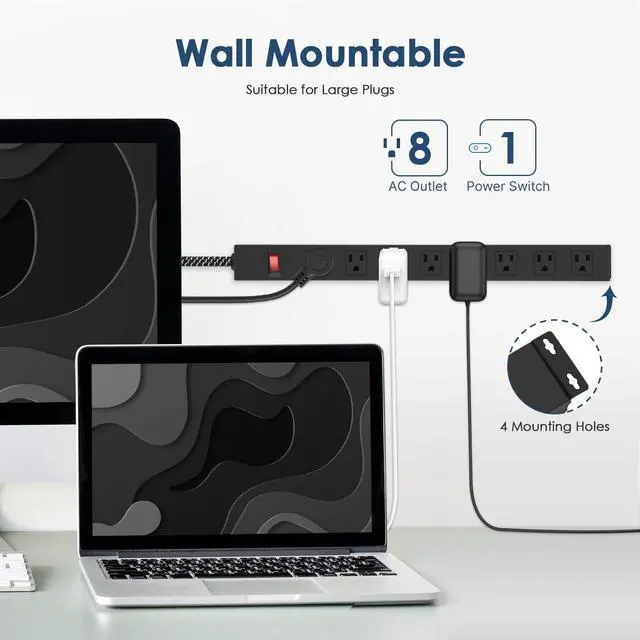 Easy Wall MountingFeaturing 4 screw holes at the back, this wall mount power strip can be easily mounted to any desired location. Whether in your office, living room, or garage, it provides flexible and convenient access to power sources.
